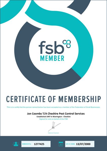 During employment within the pest control industry, sat the British Pest Control Diploma Part 1 in 1996 followed by the British Pest Control Diploma Part 2 in 1997, he then went on to focus on developing the business and was awarded the NVQ Level 3 Business Owner Manager Standards by the London Chamber of Commerce & Industry with support from Warrington Business Venture, this was also recognised at the time when we won Warrington’s Rotary Club award to assist new businesses.