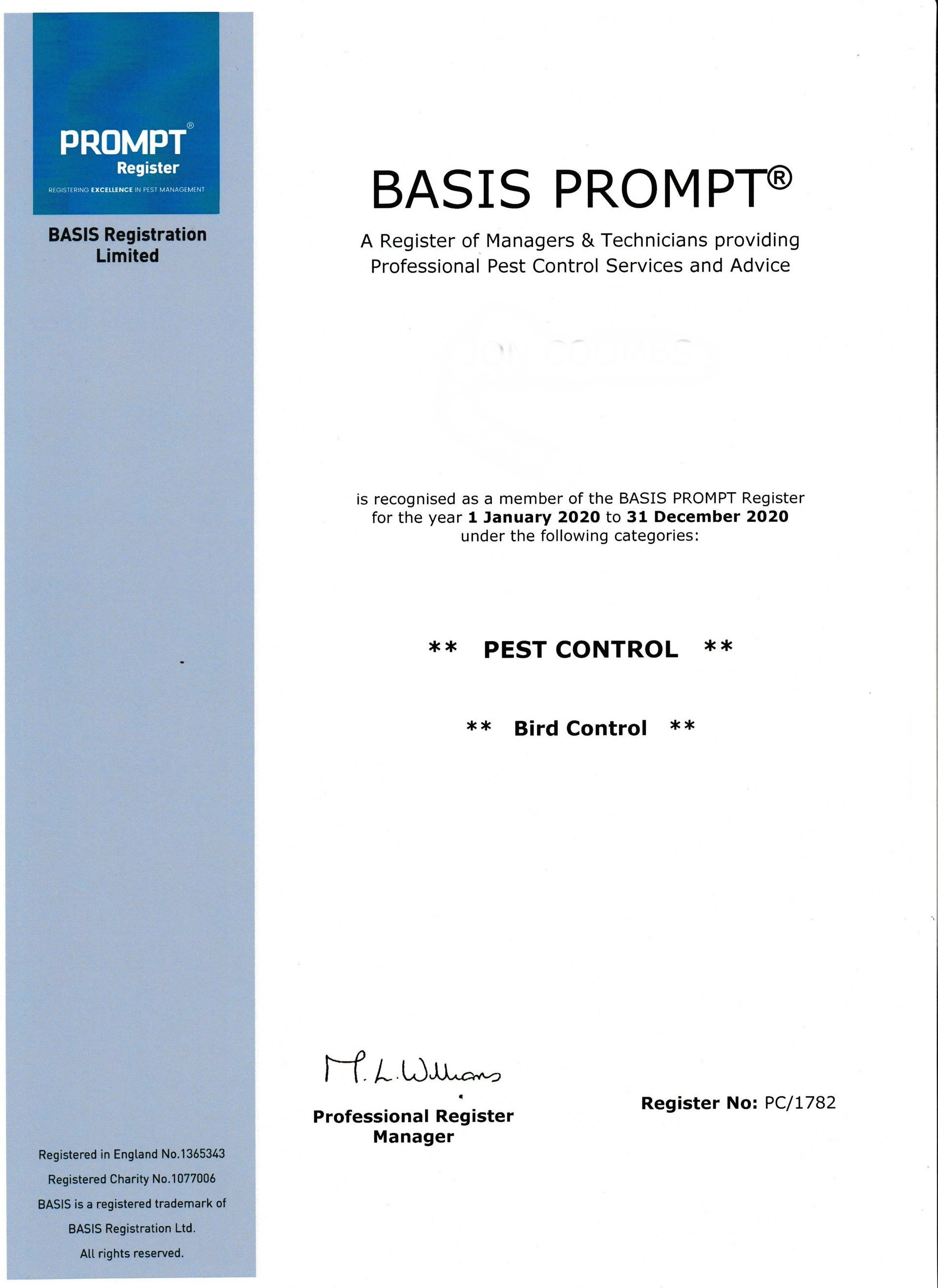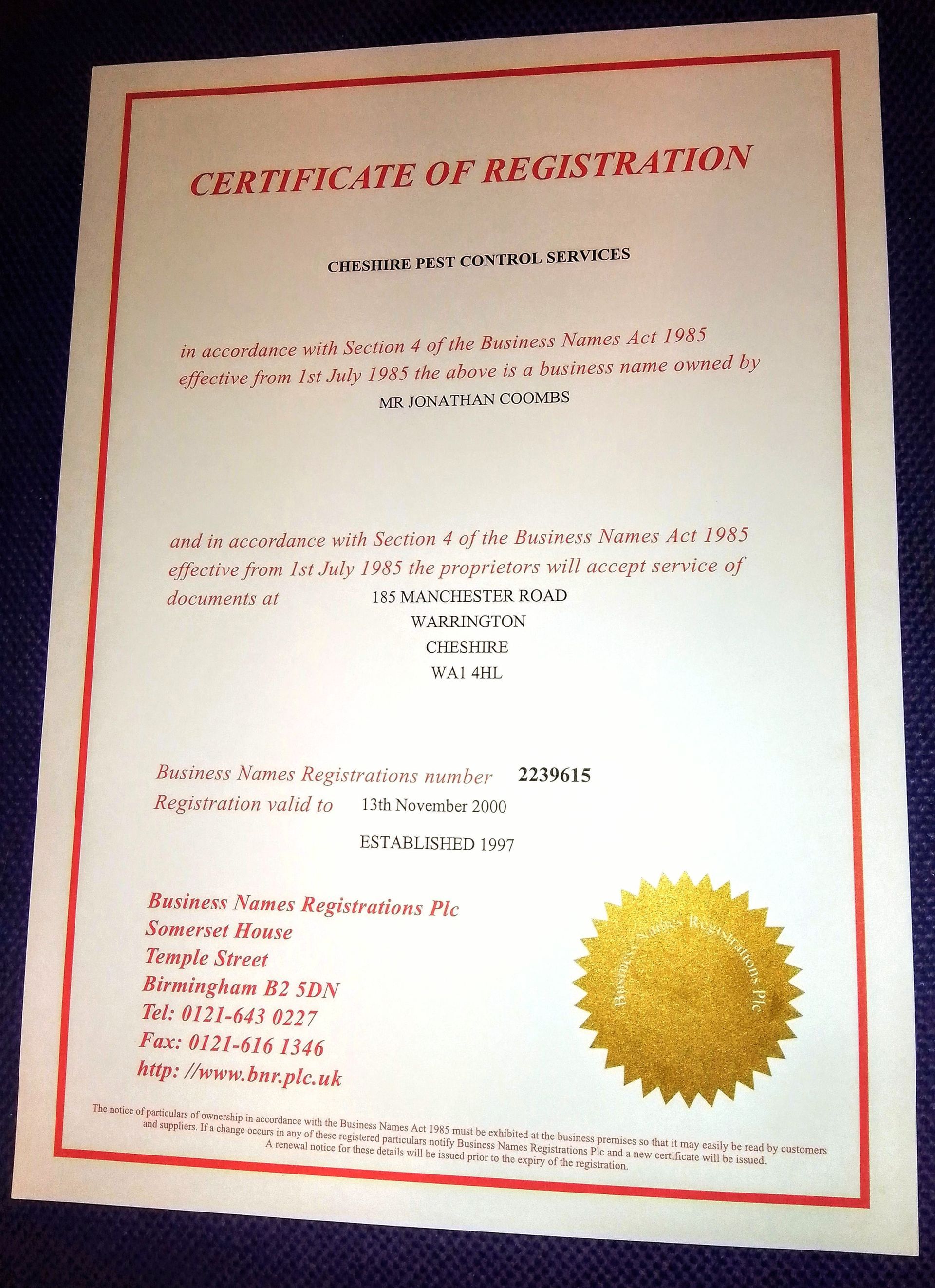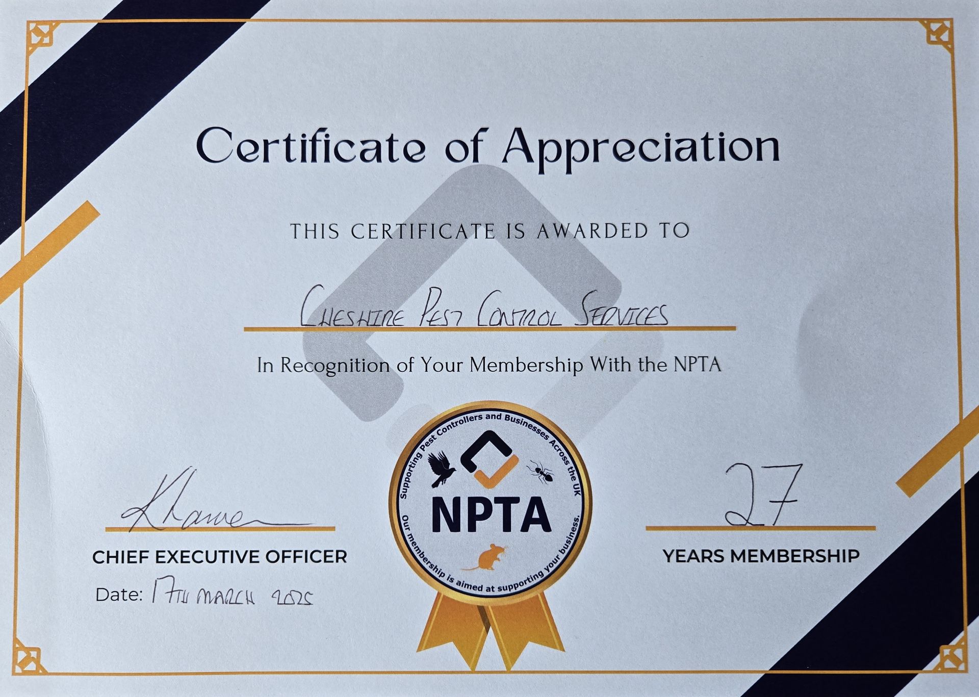 During employment within the pest control industry, sat the British Pest Control Diploma Part 1 in 1996 followed by the British Pest Control Diploma Part 2 in 1997, he then went on to focus on developing the business and was awarded the NVQ Level 3 Business Owner Manager Standards by the London Chamber of Commerce & Industry with support from Warrington Business Venture, this was also recognised at the time when we won Warrington’s Rotary Club award to assist new businesses.